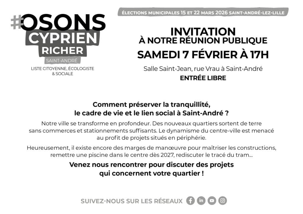 Le mouvement #Osons Saint-André, c’est une histoire habitante et militante originale, ancrée dans les valeurs de l’écologie populaire et de la démocratie directe. Nous rassemblons des habitants engagés dans la vie associative et citoyenne, animés par l’envie de donner un nouveau souffle à notre ville. Avec 7 élu-e-s au Conseil municipal depuis 2020, l’expérience de ce mandat nous motive à porter avec vous un projet collectif aux prochaines élections pour assurer – enfin – une alternance politique en 2026.