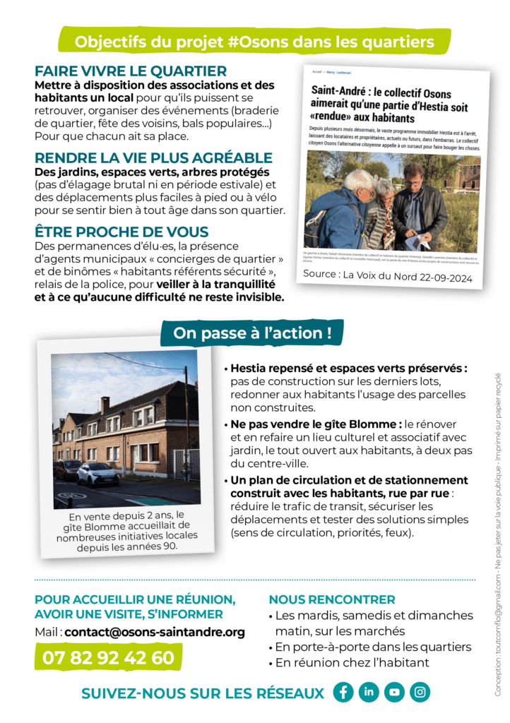 Osons Saint-André une association engagée dans l’action politique locale,
